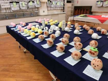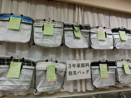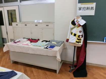 多目的室では、家庭科の授業で取り組んだ作品や家庭科部の作品を展示しています。