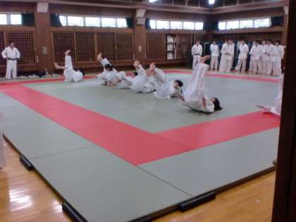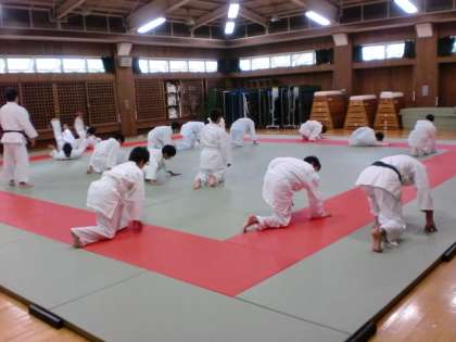 本校は、文部科学省の「中学校武道必修化に向けた地域連携指導実践校」の指定を受けて2年目となりました。柔道の安全な指導の重要性が指摘されていますが、まさに、そのための対策の一つといっていいと思います。日本体育大学の教授と学生の皆さんが来校し、柔道の授業を指導してくださいます。今年は二年目とあって、昨年指導を受けている2年生は、安全な受け身を身につけている生徒が多いとのことです。