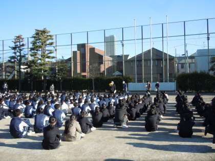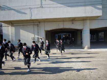火災を想定した訓練です。出火場所を避けて避難しなければならないので、避難経路の選択が重要ですね。オンライン授業選択制の時期となっているので、人員確認がとても大切でしたが、スムーズな確認ができていました。集合の様子が回を重ねるごとに良くなっているのが素晴らしい。4月に入学する新入生のお手本となる頼もしい姿でした。(桝田)