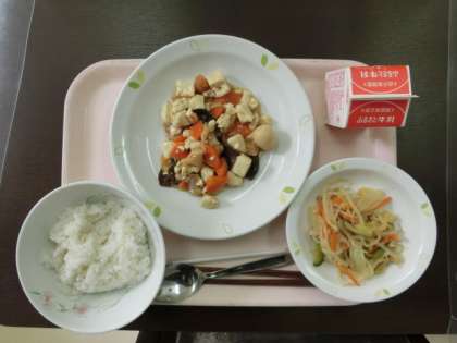 今日の、豆腐の中華炒めは、豆腐にたれがよくしみていて、とても美味しかったです。