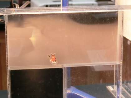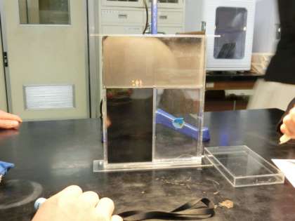 温めた岩盤を陸に見立て、水を入れて海を作ります。