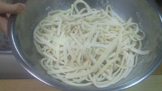 うどんが上手にできました。あまりに大量なので、厨房の大鍋で合わせてゆでて、夕食に出されます。