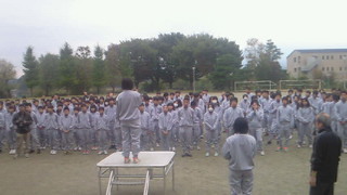 移動教室2日めです。6時半に朝礼、7時から朝食です。空は薄曇りで、気温は11度です。