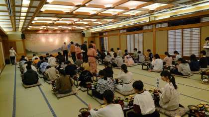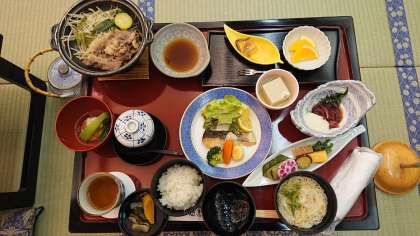 夕食が始まりました。おいしくいただきましょう。(桝田)