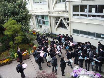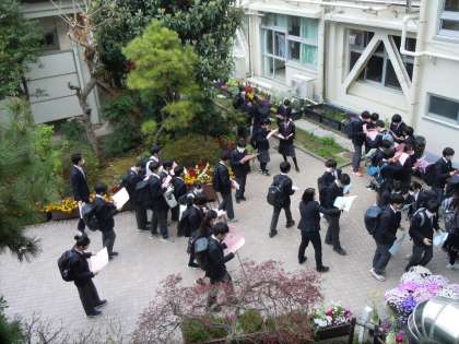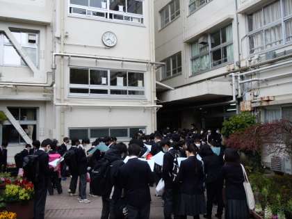 4月6日(水)、令和4年度の1学期が始まりました。生徒たちは、どのクラスになるか、わくわくどきどきしながら登校。中庭で、クラス発表の学年だよりを受け取りました。(大竹)