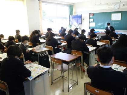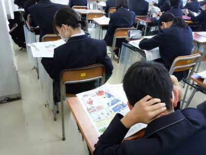 駒沢中学校では新聞教育を大切にしています。職員室前にはNIEコーナーを設置し、朝夕刊を毎日読めるようにしています。本日は、中高生向けに編集された新聞を読みました。今後とも継続的に新聞を活用したり、制作したりする活動に取り組んでいきたいと思います。(桝田)