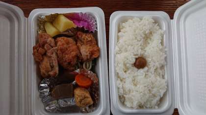 2日目の昼食は、林間学園のお弁当です。唐揚げが絶品です。(桝田)