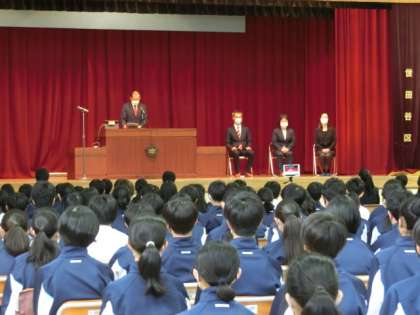 4月28日(木)の6時間目に離任式が行われました。2,3年生が体育館に集合し対面で、1年生は各教室でzoomでの参加でした。代表生徒の作文からは、お世話になった先生への感謝の気持ちが伝わりました。また、先生方のお話からは駒沢中に対する大きな愛を感じました。お忙しい中、離任式にご参加いただき有難うございました。先生方の新天地でのご活躍をお祈りしております。(大竹)