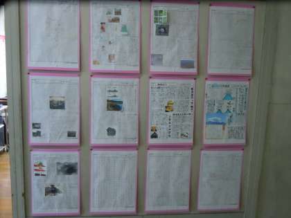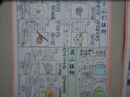 いよいよ来週は、1年生の河口湖移動教室が実施されます。4月から事前学習に取り組んでいますが、ゴールデンウィーク中の課題として各自でテーマを決めた事前学習新聞を作成しました。見応えのある作品が多く、とても参考になります。来週にそなえてよく読んでおきましょう。(桝田)