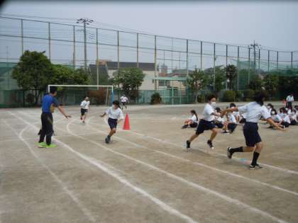 1年生は移動教室が終わると翌週に運動会です。2回目の学年練習では、全員リレーに取り組みました。行事が続きますが、この機会に無理しないように気をつけながら、自分を鍛えましょう。(桝田)