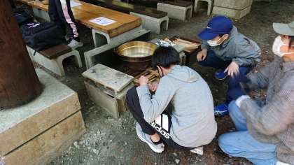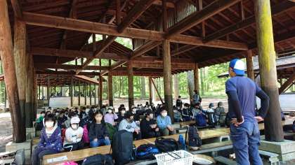 10時15分、無事にデイキャンプ場到着。説明をうけて、山梨名物ほうとう作りが始まりました。出来上がりが楽しみです。(桝田)