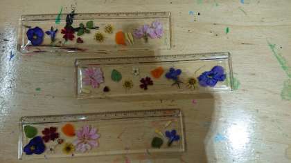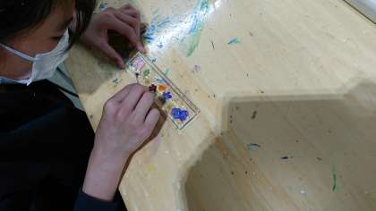 定規作りでは、森で採集された花を使ってデザインします。完成した作品は3学期の若竹祭展示発表で展示します。お楽しみに。(桝田)