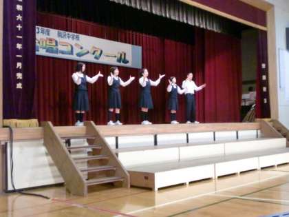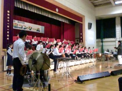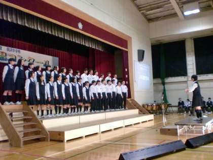 午後はアトラクションでした。手話部のトーンチャイム演奏は「上を向いて歩こう」でした。大震災からの復興に願いをこめたとのことです。今年が最後の2年生選択音楽の合唱は「いつまでも」「名づけられた葉」を、いかにも合唱大好きという生徒が美しく、迫力一杯に歌いました。手話部の手話歌は「以心電信」「涙そうそう」「DearSnow」を曲に合わせ情感あふれる表現で披露しました。吹奏楽部は「学園天国」「JIN−仁−メインタイトル」「COPACABANA」「オペラ座の怪人」を会場と一体となって、迫力一杯、華やかに、楽しく演奏しました。どれも大拍手を受けていました。