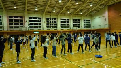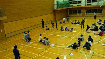 体育館で学級対抗レクを楽しみました。ボール送りとジェスチャーゲームに盛り上がりましたね。優勝はどのクラスでしょうか?(桝田)