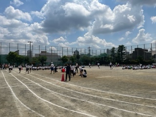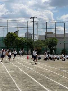 1年の全員リレーです。今日は、1位C組、2位B組、3位A組でした。本番はどうなるでしょう。楽しみです。