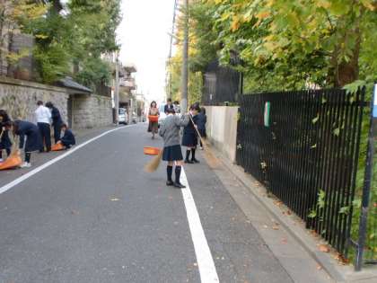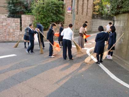 日に日に気温が下がり、学校の周りの木々も色づき始めました。今日は、今年度最初の落ち葉掃きを1年、3年の学級委員を中心に行いました。これから12月まで、何回も実施することになります。本校には、タンチ山を中心にたくさんの木々があり、地域の皆様には大量の落ち葉でご迷惑をおかけしています。落ち葉掃きは、地域のためにということももちろんありますが、生徒には気分が良いと人気のある行事となっています。