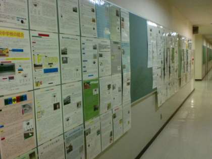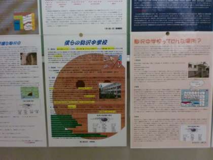また、1年生の内に、自分の学校の良いところや、伝統、特色を調べ、気がつく機会となったことも大変よいことだと思います。難点は、1ページに情報を盛り込むため字が小さくて、キャッチフレーズやデザインに誘われて、次々に見ていくと、目が疲れてしまうことです。多目的室前の廊下に展示してあります。