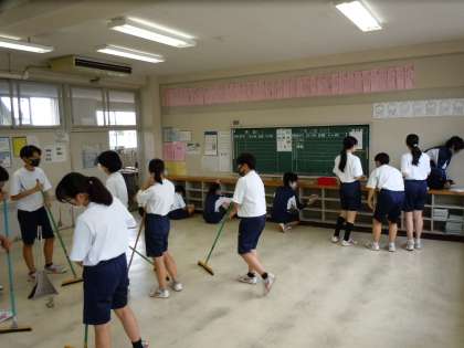 明日はいよいよ終業式です。本日は学期末恒例の大掃除を行いました。どの場所も協力して念入りに清掃しています。きれいになった床を見ると、気持ちもすっきりさわやかになりますね。(桝田)