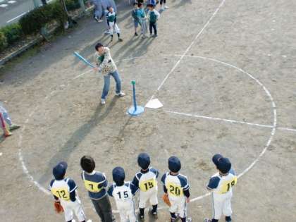 明日、本校校庭で青少年上馬地区委員会主催し、本校生徒会が運営する健全育成事業「ティーボール大会」が開催されます。恒例となっていますが、ティーボールというのは、簡単な野球形式のゲームで、ホームベース上のボール置き(ティー)に乗ったボールをバットで打つので、だれでも参加できます。地域の小・中学生、地域の皆様が参加対象です。受付8:45〜9:00。終了後、お昼にはおいしい特製カレーが用意されます。大勢の皆様ご参加お待ちしています。