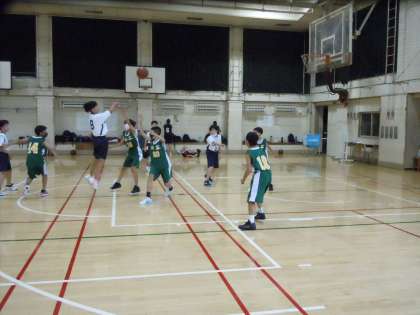 新宿区の四谷中学校男女チームが来校して、本校バスケットボール部と合同練習をしています。前半はフットワークの基本トレーニングに集中していました。後半はゲーム形式で競い合いました。他チームと一緒に活動すると大きな刺激を受けますね。(桝田)