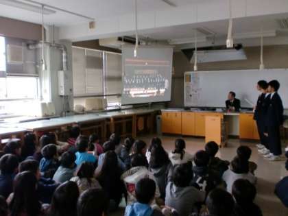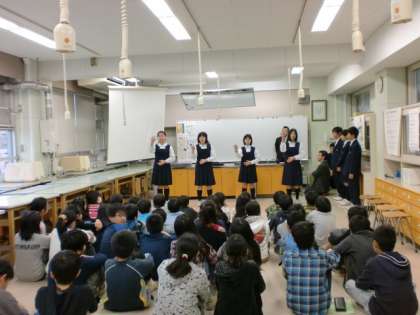 昨日の午後、生徒会の本部役員と手話部のメンバーが、三軒茶屋小を訪問し、6年生の皆さんに中学校生活について説明会を行いました。9月に体験入学を行いましたが、参加していない人もおり、中学校入学が近づいたこの時期に、生徒による説明会を行って、中学校生活への不安を少なくしてもらうのが目的です。映像を見ながら説明を行い、アトラクションとして手話部の手話歌の披露、質問コーナーではたくさんの質問が出て、生徒会役員が一生懸命答えていました。今日は駒沢小を訪問します。世田谷9年教育の一環として新たに始めたことです。