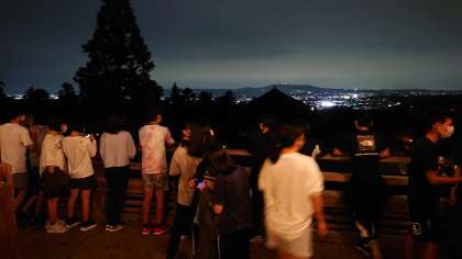 東大寺の鐘の音には、本当に歴史の重みを感じましたね。二月堂からの夜景も素敵でした。シルエットのように浮かび上がる大仏殿に気づいたでしょうか?夜の奈良公園散策は最高です。(桝田)