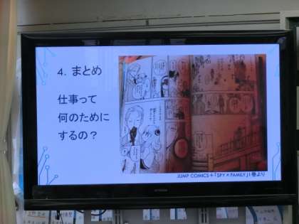 2日目は「職業人を招いて」と題して、会社員・ラッパー&コピーライター・元客室乗務員現英語講師・動物トリマー・コンビニエンスストア店長・気象情報会社・俳優の7つの職業人の方をお招きして、「どんな仕事をしているか」「その職業に就く過程」やりがい」などをお話ししてもらいました。