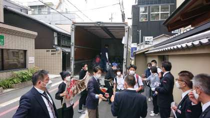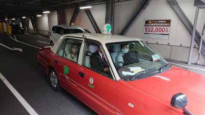 荷物を積み込み、タクシー行動の始まりです。運転手さんの名ガイドで京都を満喫してくださいね。(桝田)
