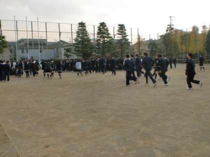 毎月行っている避難訓練。今日は、地震を想定した訓練です。緊急地震速報装置の訓練機能を使って、緊急地震速報を放送し、その後、地震が収まるまで机の下に待機した後、校庭に避難しました。緊急地震速報の装置も、大震災の後の余震に誤作動することもありましたが、今は正常に機能しています。速報が出たときの身の処し方は、普段から心構えと繰り返し訓練をしておく必要があります。今日の生徒の動きは機敏なものでした。