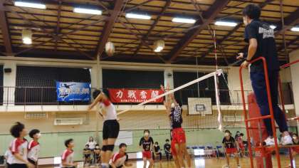ブロック大会初戦は、東山中との接戦となりました。一進一退の攻防が続きフルセットとなりましたが、惜しくもセットカウント1-2で残念な敗戦となりました。この試合を糧にして今後の練習にいかし、捲土重来を期しましょう。(桝田)