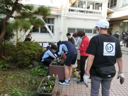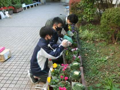 11月11日(金)放課後、JRC部の生徒と学校支援地域本部の皆さんで今年度の2度目の秋の花壇の整備を行いました。定期考査1週間前のため、生徒は少人数しか参加しませんでしたが、新しい花の苗をきれいに植え付けることができました。