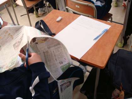本日は土曜授業日でカジュアルデーです。1年生では、総合的な学習の時間に「NIEタイム」を行いました。新聞記事を読むことに慣れてきて、関心ある記事の選び方がとても早くなりましたね。記事を要約して自分のコメントを記入した後、グループで選んだ記事とコメントを発表し合います。メディアリテラシーの向上につなげていきましょう。(桝田)