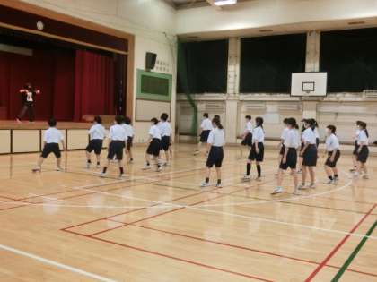 本日より、各クラス5時間に渡って、保健体育でダンスの授業を行います。区より、ダンス(現代的なリズムのダンス)について専門性の高い講師を派遣していただき、教えてもらいます。
