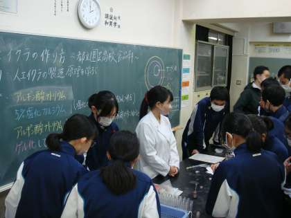 2年生では、高等学校から先生方をお招きして「高校授業体験」を行いました。ご来校いただいた学校と授業テーマは以下の通りです。まずは都立高校から。