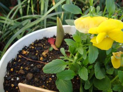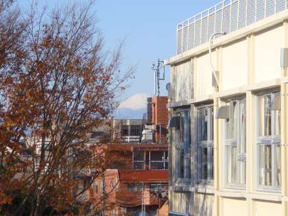 朝晩の冷え込みが厳しくなり、冬本番となってきました。本日のような冬の澄み切った青空には、富士山の眺めが映えますね。英語室からくっきり見えますので、ぜひ眺めてください。2年技術で栽培しているチューリップは、早くも芽が出てきました。促成栽培の成果のようです。(桝田)