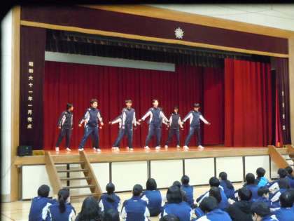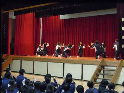 3・4校時は2年生の発表会です。グループごとにオリジナルの振り付けを考えて、苦労しながら創り上げたダンスです。(桝田)