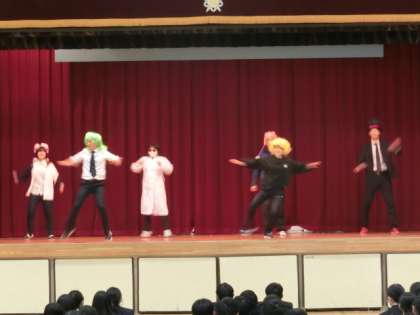 最後の先生方からのサプライズですが、12月の体育でダンスが行われていたのですが、それに感化されたらしく前日も夜遅くまで練習をして、本番に臨みました。生徒たちは、大変盛り上がり、受験真っ只中の一服の清涼剤だったのではないかと思います。先生方の中には、振りを間違えたと言って悔しがっていた方もいました。(大竹)