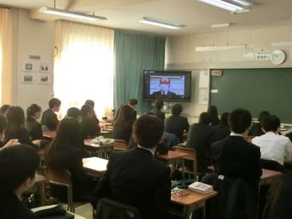 まず始めに校長先生のお話があり、その後、各学年の代表生徒から2学期の反省の発表がありました。