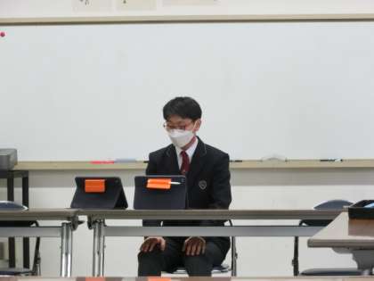 当初、終業式は体育館で全校集会の形で、校歌斉唱も行う予定でした。しかし、コロナウイルス感染症の陽性者が数名いたりと、まだまだ予断を許さない状況もあるので、オンライン配信による終業式とすることにしました。