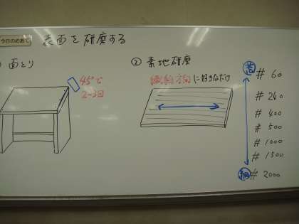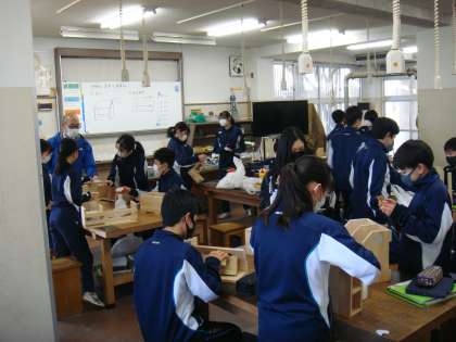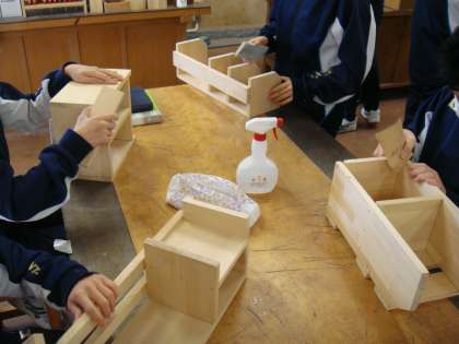 木材加工に取り組んでいます。本日の作業工程は「表面の研磨」です。紙やすりを使って、面とりと素地研磨をていねいに慎重に行っています。研磨する前と後では触った感触がまるで違いました。完成品が楽しみですね。(桝田)