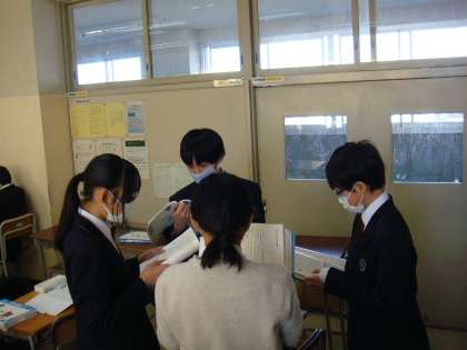「今を生きる言葉」という単元に入りました。中学校で初めて「漢文」について学習します。本時のねらいは「漢文を音読し、独特のリズムや言い回しに親しもう」です。慣れない漢文の書き下し文を様々な工夫された読み方で音読していきます。特に、ペアやグループで音読をしている場面がよかったですね。スラスラ音読できることは読解力につながっていくということなので、しっかり声を出して読んでいきましょう。(桝田)