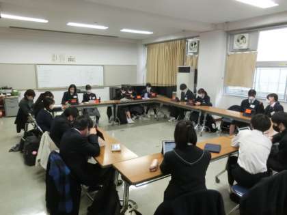 今日は、2月4日(土)の報告会に向けての準備の会でした。まず始めに、各校が作ってきた動画をお互いに鑑賞し、完成に向けてのアドバイスをしました。その後、報告会のリハーサルを行いました。