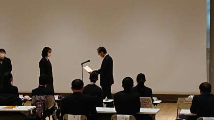 区内の中学生が日常生活の中で気づいた疑問や取り組んでみたいことから自分で課題を見つけ、豊かな発想力や想像力によって解決を図った夢のある個人研究を発表します。一次審査には、サイエンス部門とプログラミング部門から2596作品の応募があり、その中から選ばれた9人の生徒がこの日の発表会に臨みました。本校2年生女子が「ダンゴムシとワラジムシ」の交替性転向反応について、実験結果に基づく発表を行い、見事に最優秀にあたる「ガリレオ賞」を受賞しました。どの発表もデータに基づく実証的で、今日的課題を探究したものも多く、とてもレベルの高い内容でした。ガリレオ賞受賞、おめでとうございます。(桝田)