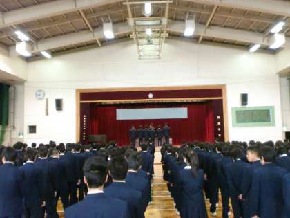 今日から2月です。今朝は全校朝会がありました。校長から、一昨日公表された日本の人口が減少していく問題を例に、自分の生き方を考える時に、多角的な見方ができることが大切で、そのために今勉強することが必要だとの話がありました。表彰では、剣道部が男子団体で区の新人大会で3位になり、表彰されました。
