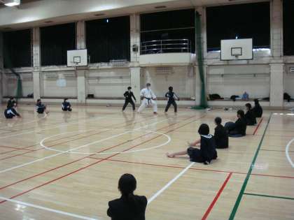 武道の授業で空手に取り組んでいます。東京都空手道連盟から講師の先生をお招きして、形の習得に励みました。「礼にに始まり、礼に終わる」武道の心を大切にしたいですね。(桝田)