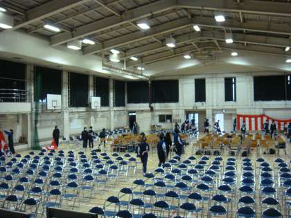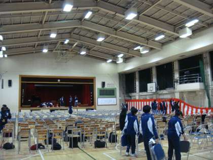 前日の会場準備は2年生が担当します。来年の自分の姿を想像しながら、ていねいに会場を整えていきました。2年生の仕事ぶりはとても手際よくなりましたね。(桝田)