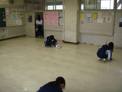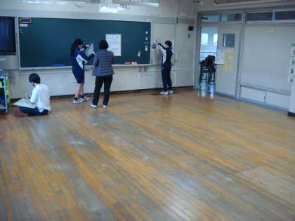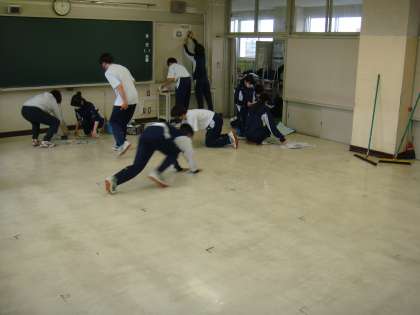 いよいよ明日は1年納めの修了式です。1年間お世話になった教室を次の学年に引き継ぐために、ていねいな清掃活動が全校一斉に行われました。3年生の教室は2年生が担当しました。どの教室もきれいになりましたね。(桝田)
