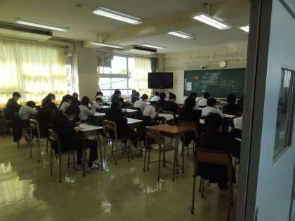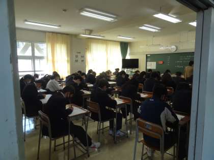 今日は全学年で学習習得確認調査です。国語、数学、社会、理科、英語(2、3年生のみ)と続きます。