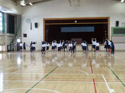 2年生の1校時は英語、美術、保健体育です。保健体育では運動会の学年種目である「ハリケーン」の練習をしました。