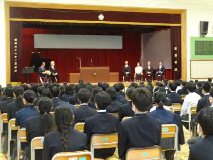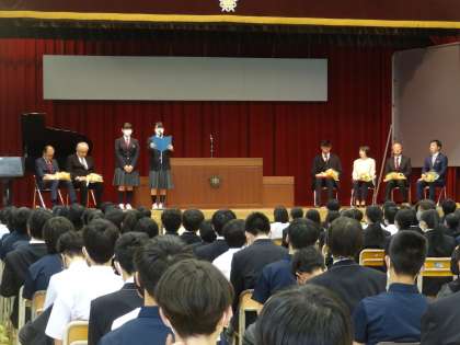 今年3月で駒沢中学校を離任された、桝田校長先生、大竹副校長先生、片桐先生、渡邊先生、加藤先生、古川先生が本校にいらっしゃいました。代表生徒がお礼の言葉を述べ、花束を贈呈しました。最後に校歌を斉唱しました。離任された先生方が残してくださったものを引き継ぎ、よりよい駒沢中学校になるよう力を合わせていきます。今までありがとうございました。